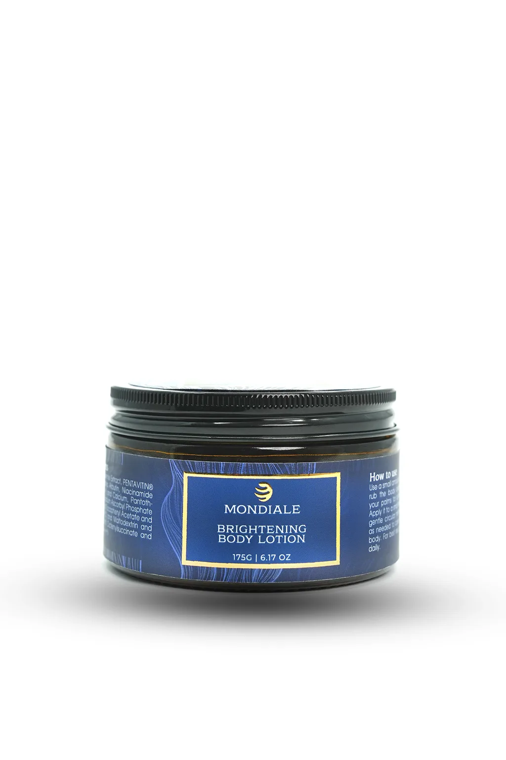 Mondiale Brightening Night Body Lotion is a luxurious night-time treatment designed to restore, hydrate, and brighten your skin while you sleep. Enriched with advanced brightening actives and nourishing botanicals, this lotion helps fade dark spots, even out skin tone, and deliver lasting moisture. Each application works overnight to reveal softer, smoother, and visibly more radiant skin by morning.